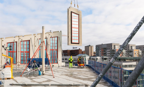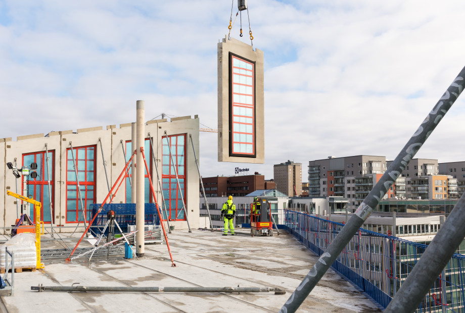 Tomēr, ciešā sadarbībā ar projekta attīstītāju Skanska Sverige, mums izdevās identificēt dzelzsbetona konstrukcijas no cita būvobjekta un veiksmīgi iekļaut tās Olivin karkasā.