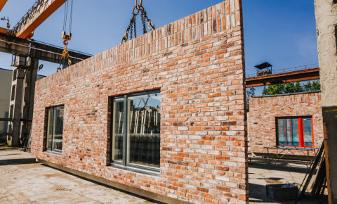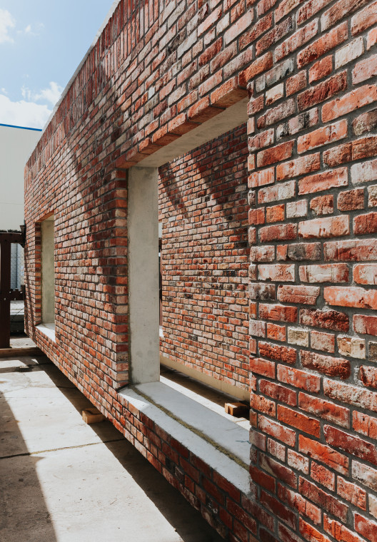 These concrete façade walls with reclaimed bricks are yet another example of embracing circularity in construction.