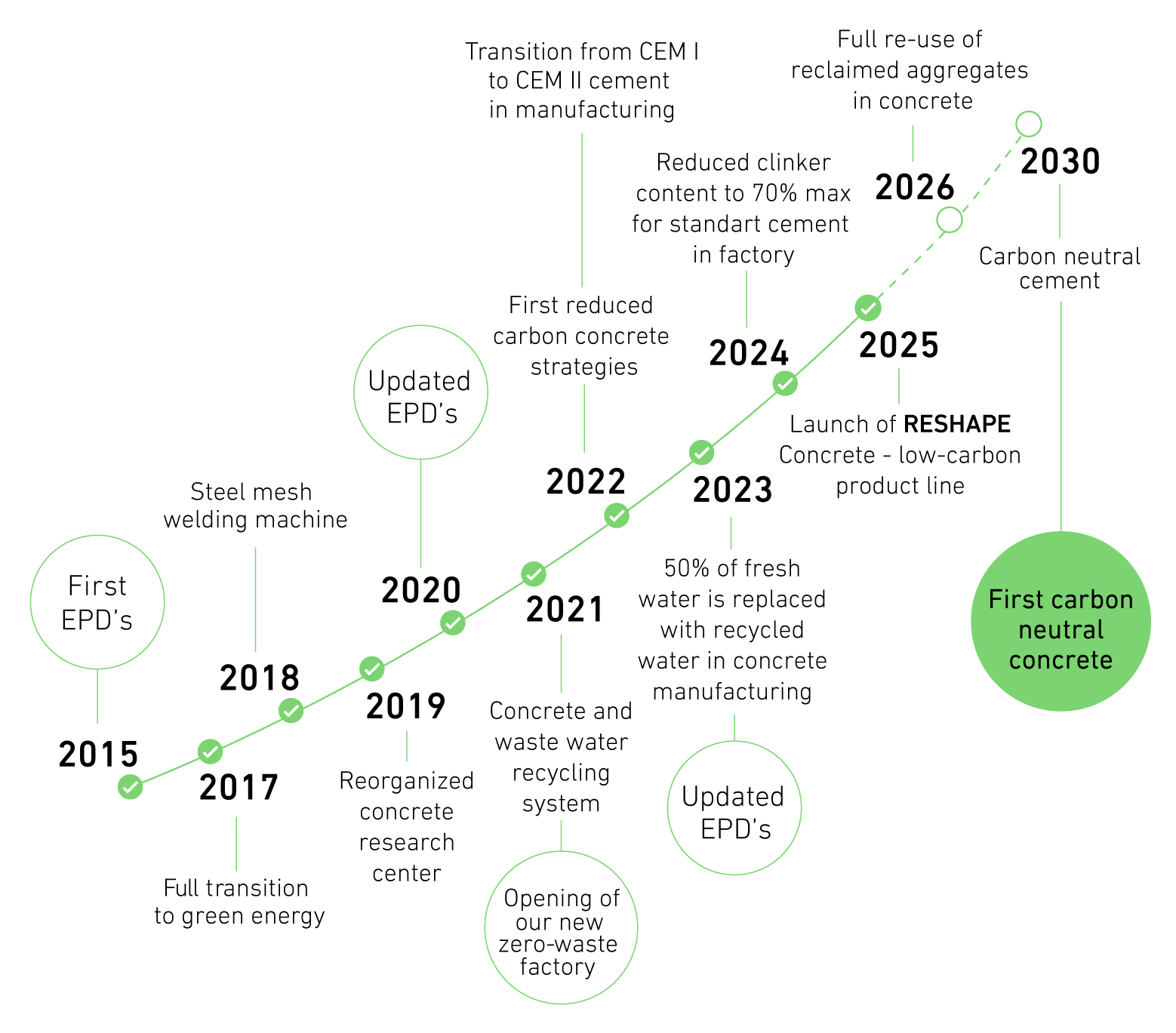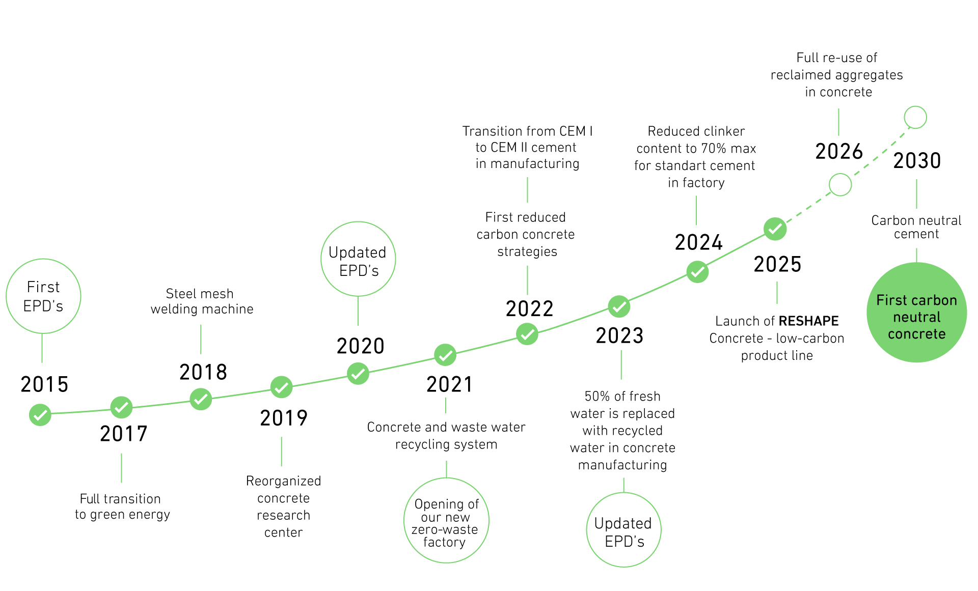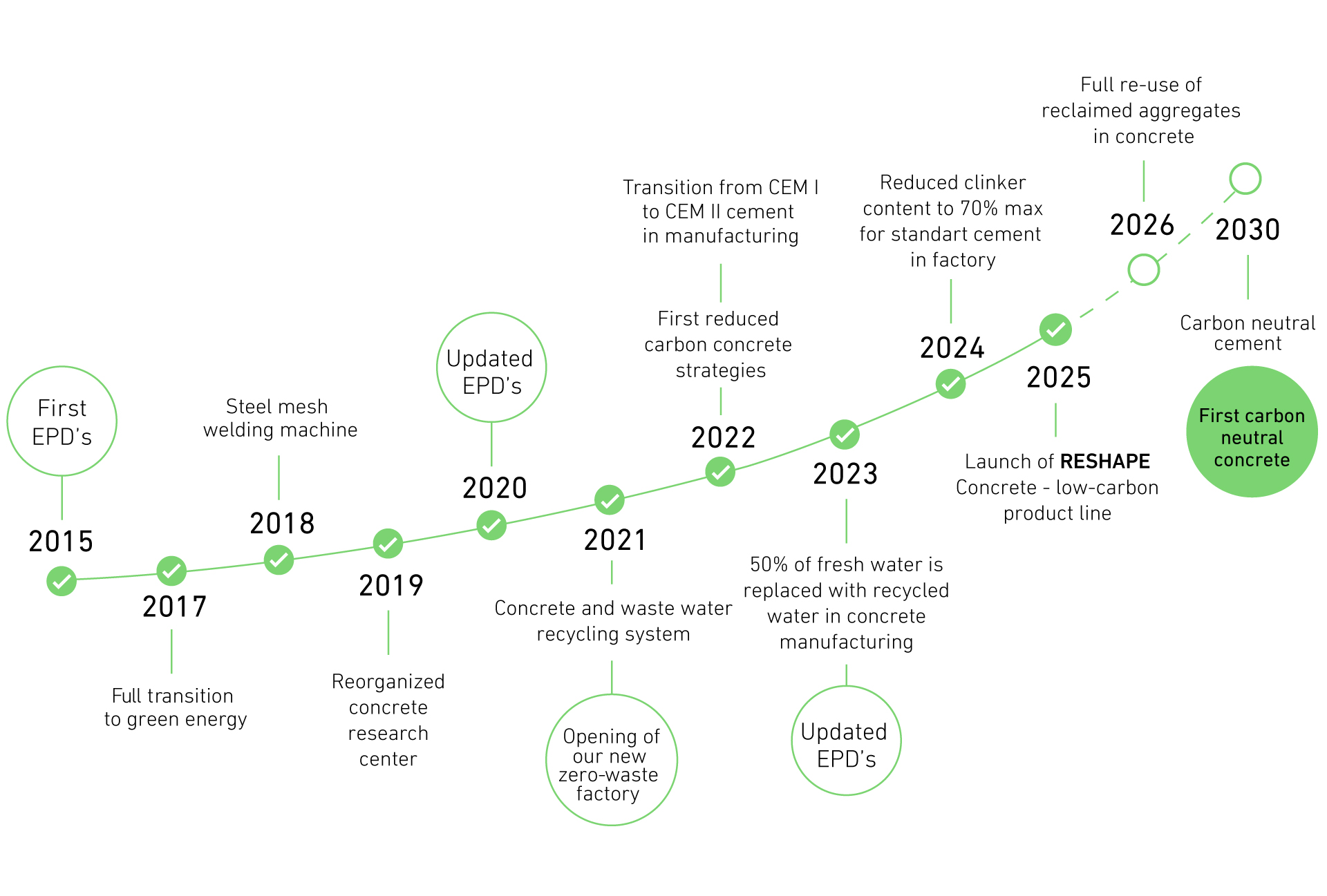 Our path toward more environmentally friendly concrete began in 2015, when we established the first EPDs for our products.