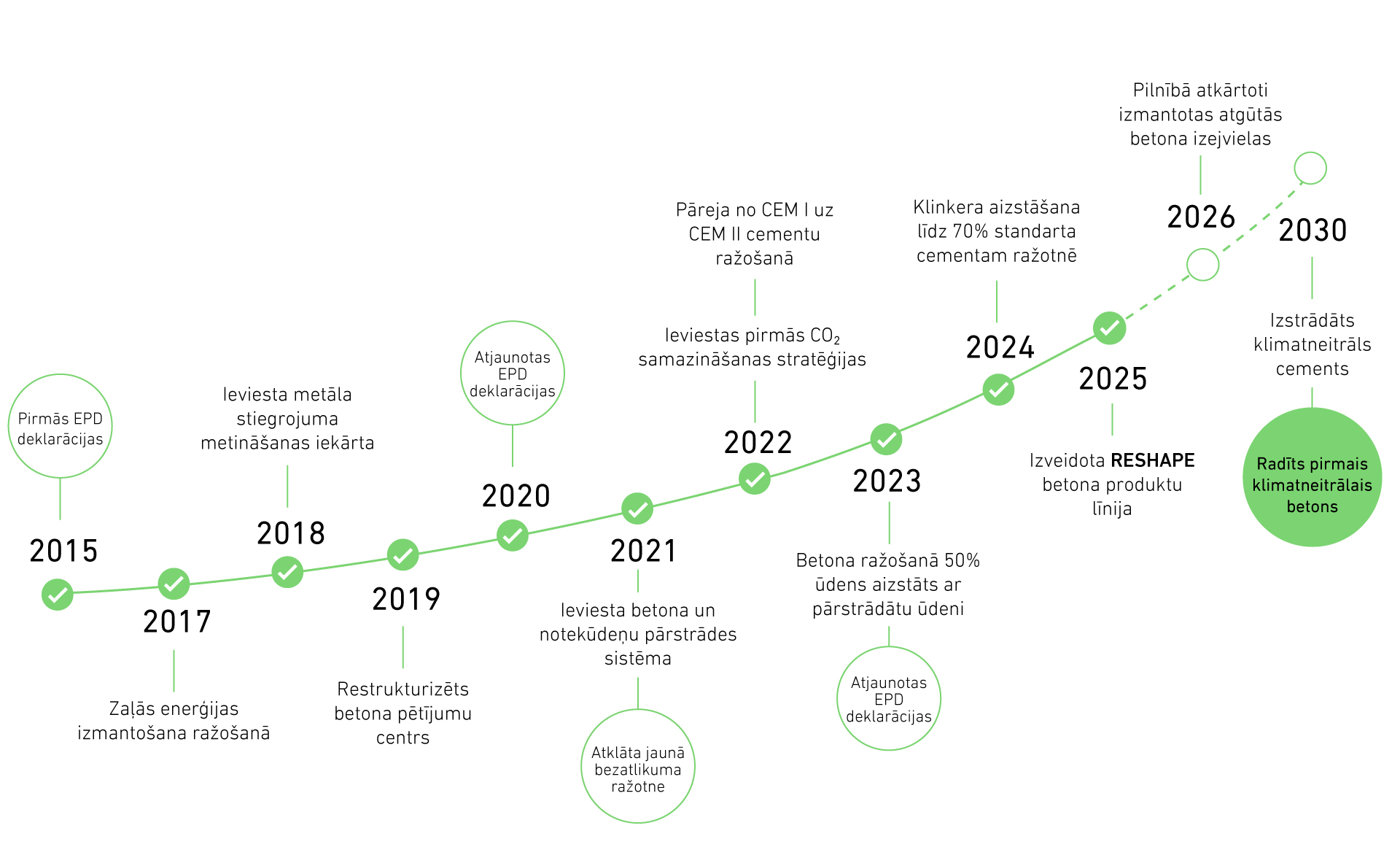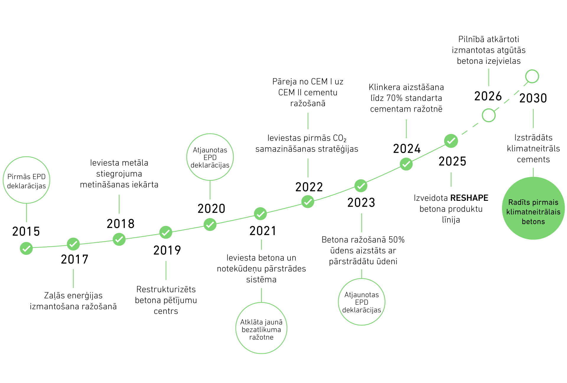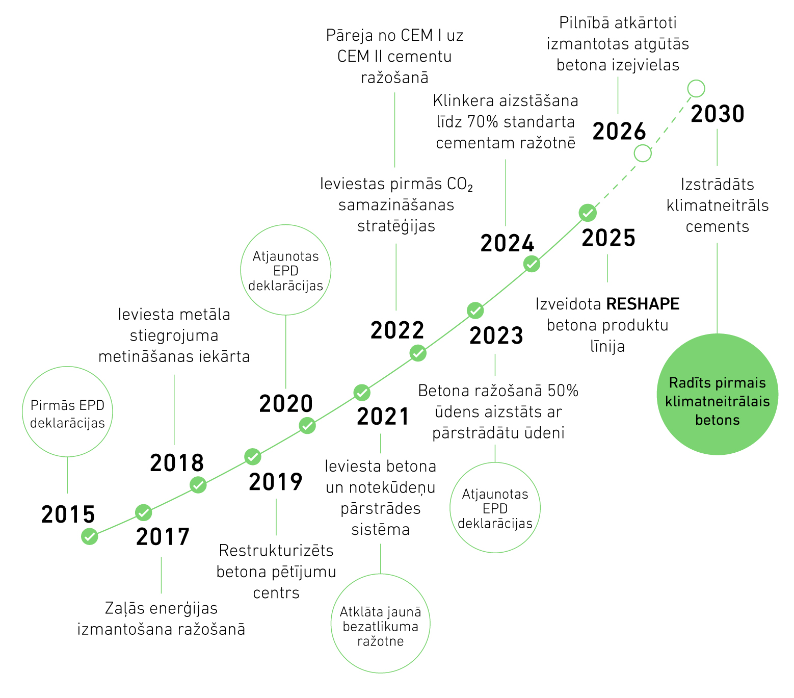 Mūsu ceļš uz emisiju samazināšanu betonā aizsākās 2015. gadā, izstrādājot pirmās produktu vides deklarācijas (EPD).